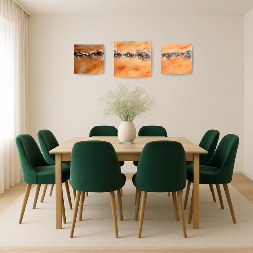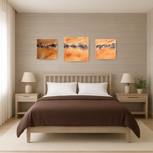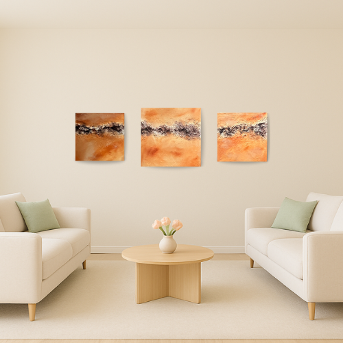 Het herinnert ons eraan dat, zelfs in momenten van onrust, we de kracht hebben om ons aan te passen en te groeien. Dit kunstwerk brengt de balans tussen stabiliteit en verandering in elke ruimte. Of je nu zoekt naar kalmte in je werkruimte of energie voor je woonkamer, “Aarde in Beweging” is een perfecte aanvulling.