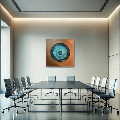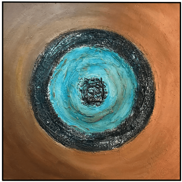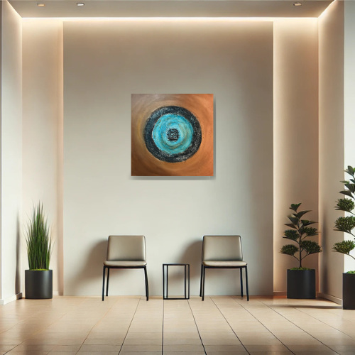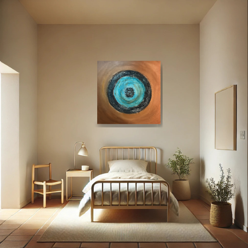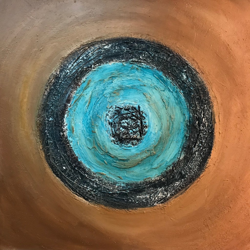 De rust van de aarde, gevangen in warme, aardse tinten. De kracht van het centrum, een diepblauwe kern die een gevoel van focus en stabiliteit brengt. Dit werk nodigt je uit om stil te staan en te reflecteren. Het is een herinnering aan hoe zelfs de meest complexe lagen – van ons leven, onze gedachten – kunnen samenkomen tot iets eenvoudigs en krachtigs.