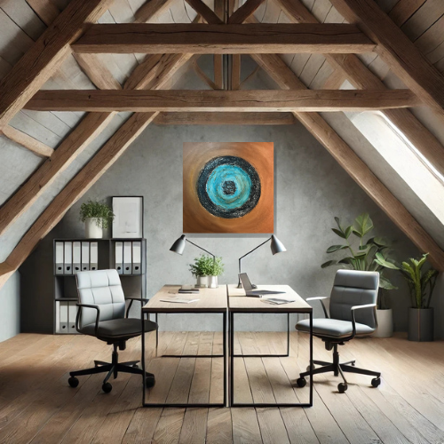 Het schilderij is handgemaakt, met texturen die je bijna kunt voelen door alleen al te kijken. Het past perfect in een interieur waar balans en sereniteit een thuis vinden. Denk aan een plek waar je tot rust komt, misschien in je woonkamer, slaapkamer, of je eigen creatieve ruimte.