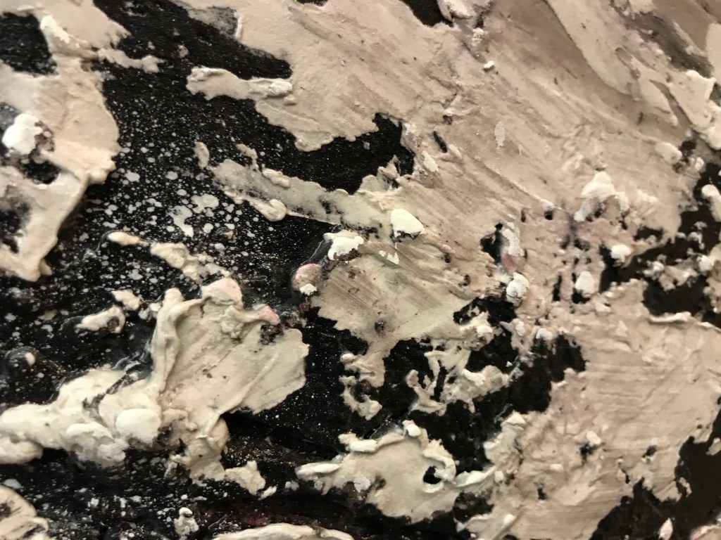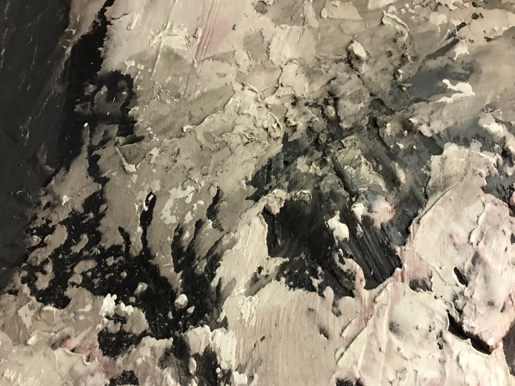 - Handgemaakt abstract schilderij met textuur in grijs en wit.